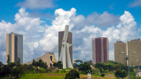 Starker Wirtschaftsstandort Abidjan – modernes Finanzzentrum mit internationalem Flughafen und Häfen.