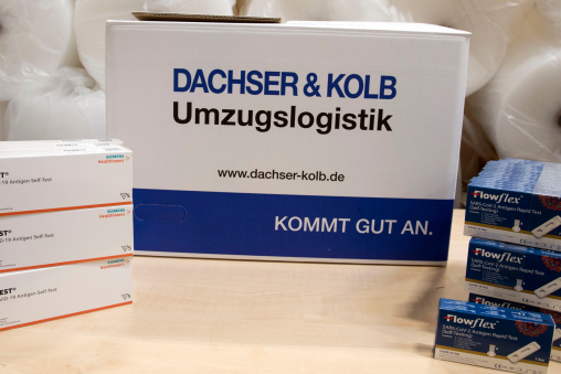 Seit Schuljahresbeginn kümmert sich DACHSER & KOLB darum, dass die Corona-Testpflicht an rund 350 Allgäuer Bildungseinrichtungen reibungslos abgewickelt wird. Sowohl die Lagerung, Bestellung, Kommissionierung als auch die Belieferung und Abholung von Corona-Tests und Mund-Nasen-Masken gehören zu den Leistungen des Umzugslogistikers.