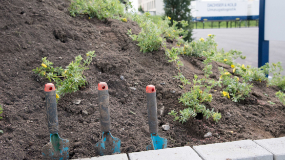 Pünktlich zum Herbstbeginn wurde das Außengelände der neuen Firmenzentrale von DACHSER & KOLB mit vielfältigen Pflanzen geschmückt und ein ökologischer Ausgleich zu den bebauten Flächen geschaffen.