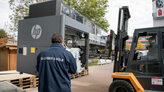 Sonderlösungen für außergewöhnliche Transporte, das macht den Möbelspezialisten von DACHSER & KOLB besonders Spaß. „Eine Herausforderung wie diese ist nicht alltäglich und natürlich macht es Freude, den Kunden bei seinem besonderen Projekt zu begleiten. Wir haben den Transport dieser übergroßen Druckmaschine individuell geplant und durchgeführt. Eben auf die Bedürfnisse des Kunden und die Gegebenheiten vor Ort zugeschnitten“ hat sich Projektleiter Torsten Mahler gerne dieser Herausforderung gestellt. Bei solchen speziellen Transporten ist Fingerspitzengefühl, eine gute Planung und durchdachte Arbeit zwingend von Nöten. Für das Objektumzüge-Team bei DACHSER & KOLB kein Problem: Für das Verladen einer Druckmaschine haben die Mitarbeiter dafür aus 80 Paletten eine Rampe angebaut, um die doch sehr unhandliche Maschine sicher und schadenfrei von der Produktionshalle auf den LKW zu bekommen.