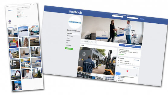 Seit kurzem ist DACHSER & KOLB auch auf den Social Media-Plattformen für Sie da. Auf Facebook und Instagram können Sie damit verfolgen, was bei DACHSER & KOLB passiert und wie der Umzugslogistiker arbeitet. Egal, ob spannende Umzüge, interessante Projekte, offene Stellen oder einfach nur ein Blick hinter die Kulissen. Bleiben Sie informiert und erfahren Sie mehr über nationale und internationale Tätigkeiten des Logistikunternehmens.