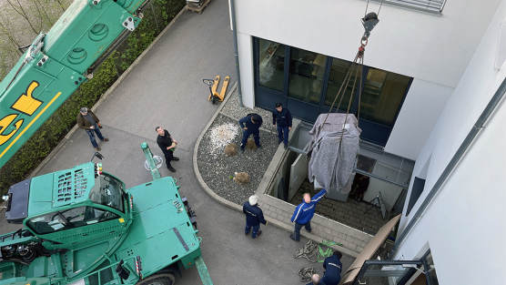 Nach der Vorarbeit des Kunden konnte das Umzugsteam von DACHSER & KOLB, bestens ausgestattet mit Kran, Sattelschlepper und LKWs, alle Einrichtungsgegenstände in lediglich acht Tagen vom Altbau in den Neubau transportieren. „Damit wir gewährleisten können, dass der Umzug schnellstmöglich abgeschlossen werden kann und der Kunde eine möglichst geringe Ausfallzeit hat haben wir – wie bei jedem unserer Projektumzüge – davor exakt geplant was wir benötigen. Ausgestattet mit 100 Rollwagen, zahlreichen IT-Wannen, Lastenschwerguthebern und Hochhubwagen konnten wir den Umzug in nur acht Tagen abschließen. 67 Fahrten mit großen Fahrzeugen waren nötig, um alles zu transportieren, das Be- und Entladen das dazugehört nicht zu vergessen“ erzählt Peter Beutel, Head of Relocation Logistics bei DACHSER & KOLB.
