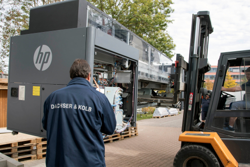 Unsere Spezialisten für Geschäftsumzüge haben einen Kunden dabei unterstützt, seine Druckmaschine sicher zu verladen und zum Käufer ins Ausland zu transportieren. Für diesen internationalen Spezialtransport hat DACHSER & KOLB flexibel mit dem Bau einer temporären Rampe reagiert.