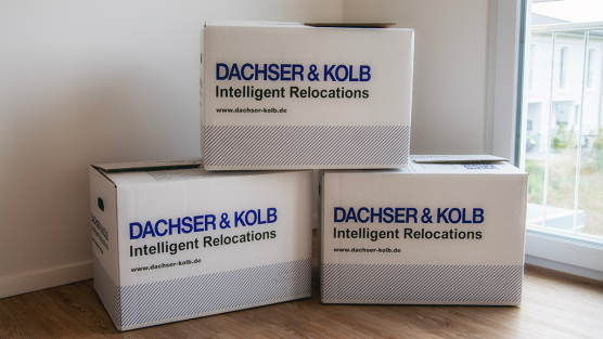 Der Umzugskarton von DACHSER & KOLB erstrahlt in neuem Glanz: Das gesamte Design wurde überarbeitet und das neue Logo mit dem Slogan "Intelligent Relocations" wurde integriert.